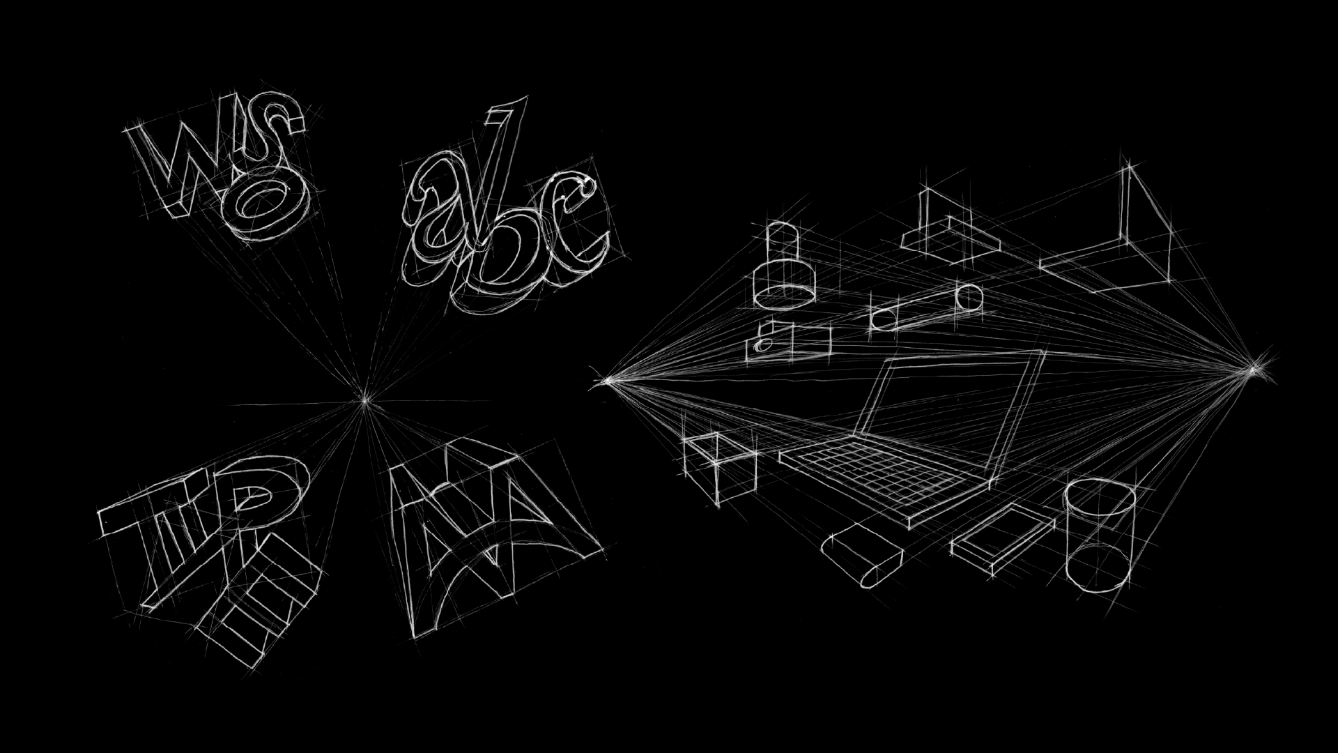 These 2 weeks of intensive practice in 1-point perspective, I gained confidence in sketching both geometric and letterform structures. The left side of my drawing focuses on 3D type design using a single vanishing point, while the right side applies 2-point perspective to complex tech-related objects like a laptop, phone, and speakers.