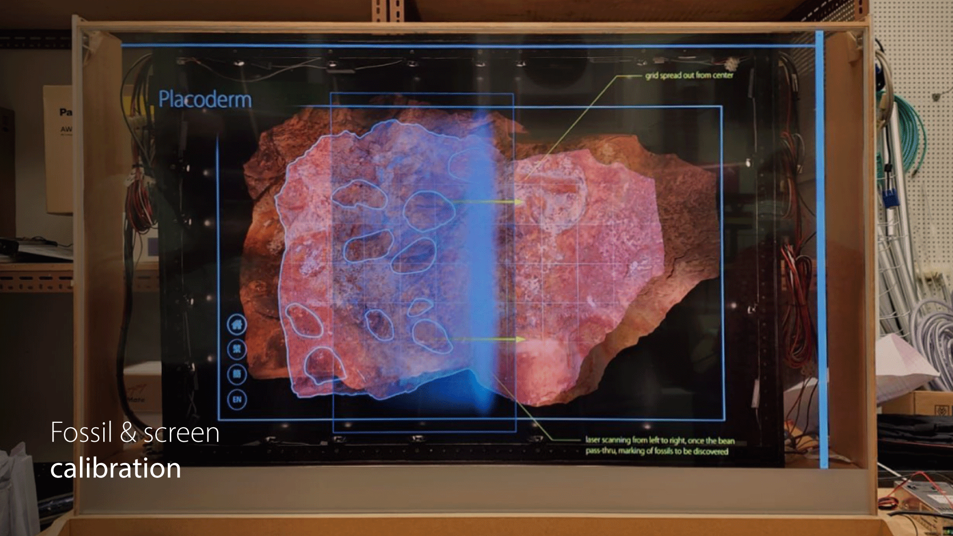 Hong Kong Science Museum needed an interactive way to explain placoderms beyond a static label. The goal was to deliver core facts (age, skin, anatomy, habitat) while keeping attention on the real fossil.