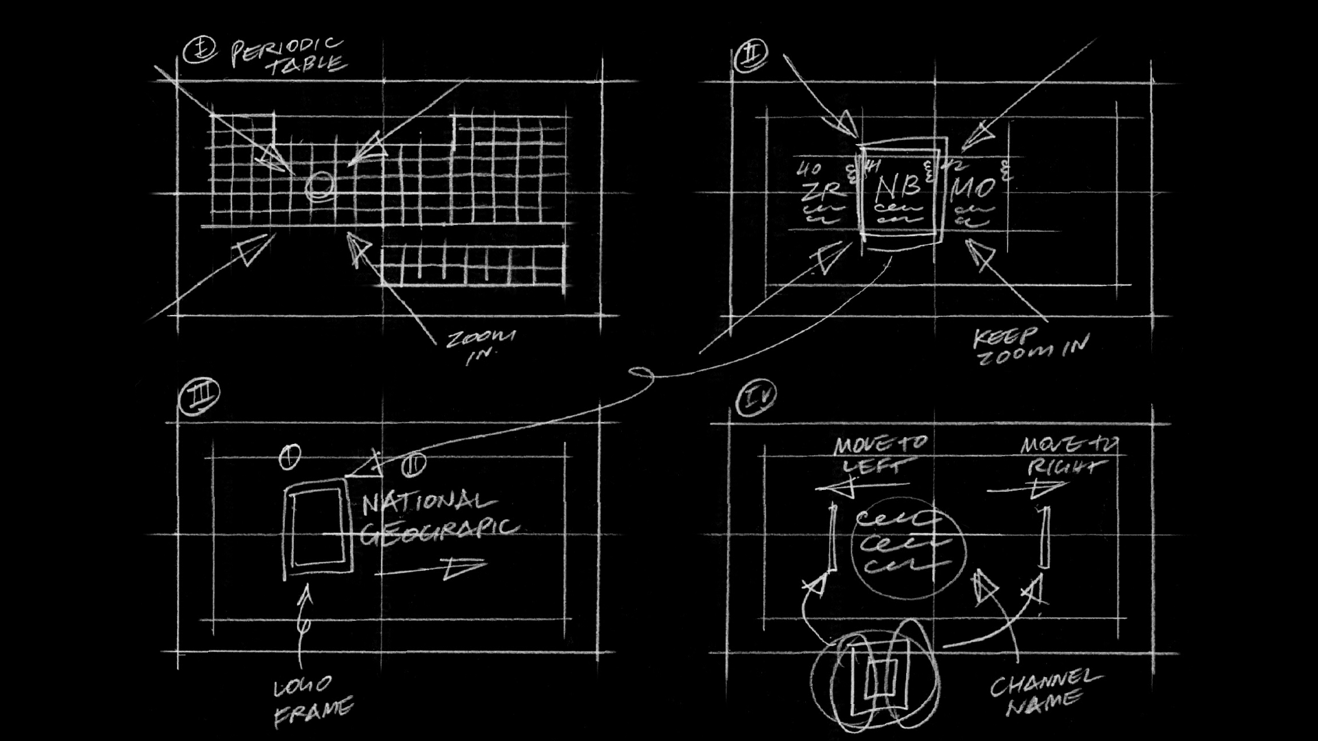 I developed a storyboard based on the concept of the Periodic Table, symbolizing science. The camera begins with a zoom-in motion toward the table, eventually focusing on a single block. I then animate a yellow line framing this block, which transforms into the iconic National Geographic “Yellow Door.” Finally, the brand name slides in to complete the opening sequence.