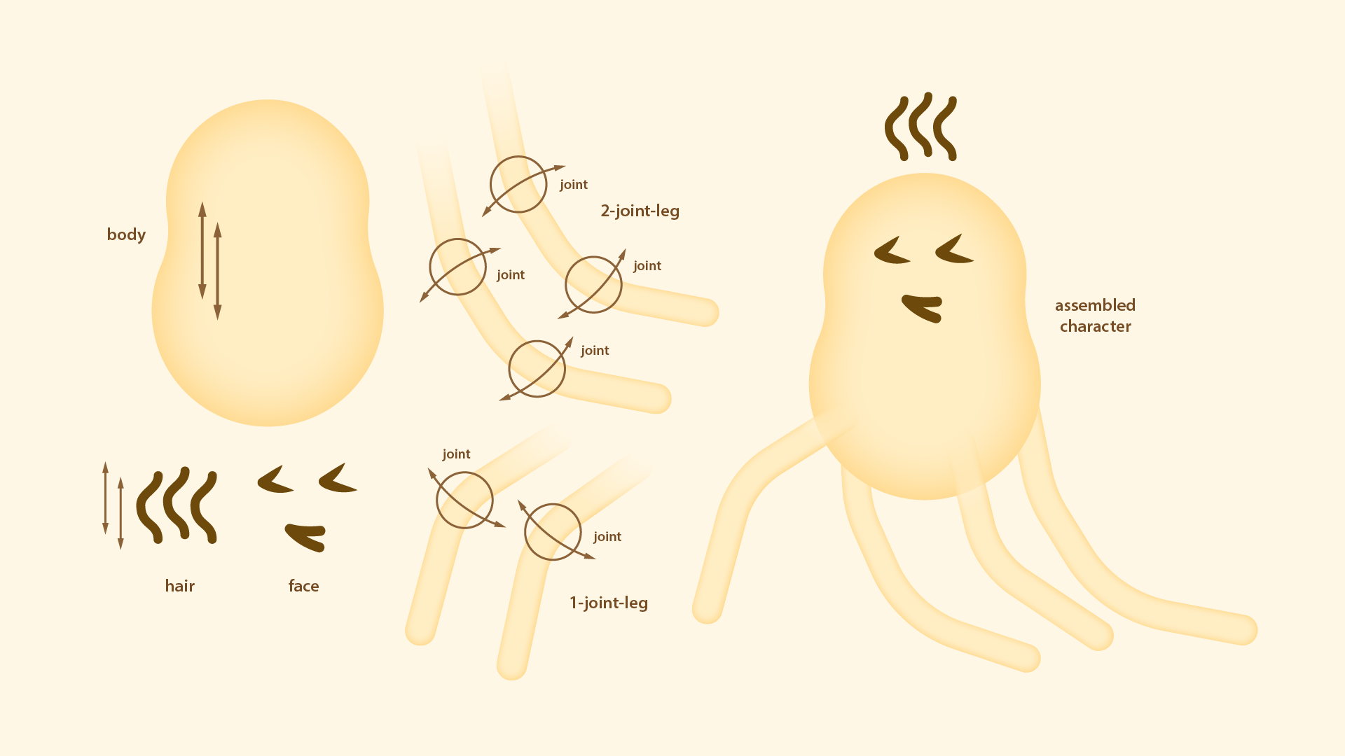 For character option B, I also aligned all body parts and built the structure in After Effects. I animated the character using keyframes in a cycle. The biggest challenge was animating the 4-leg version, which looked awkward. So I chose the 2-arm + 2-leg version instead, it was much easier to control and looked more natural in motion.