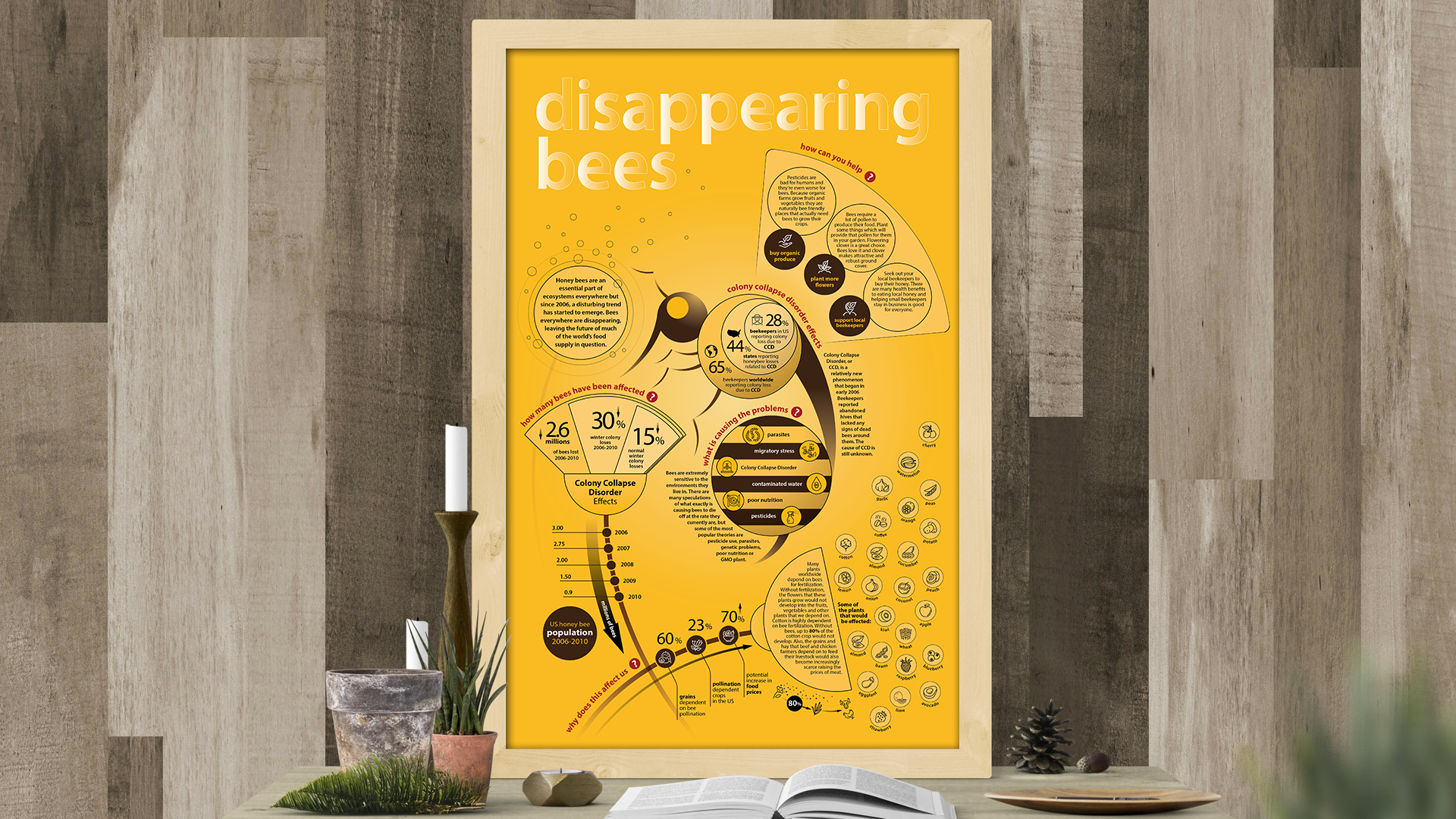 In week 3, I applied the revised content to the abstract bee layout and found it functioned effectively. After several rounds of feedback from the professor, I refined the design with detailed adjustments, enhancing clarity, alignment, and visual hierarchy to achieve a polished final result.