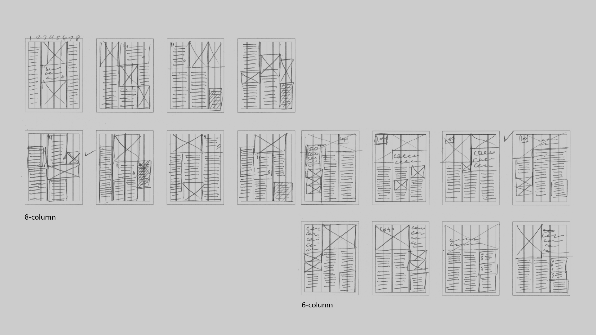 In the 1st stage, I explored both 6-column and 8-column grid systems to estimate how the provided text could be distributed effectively. This helped me assess the necessary space for each section and plan for a clear, readable layout.