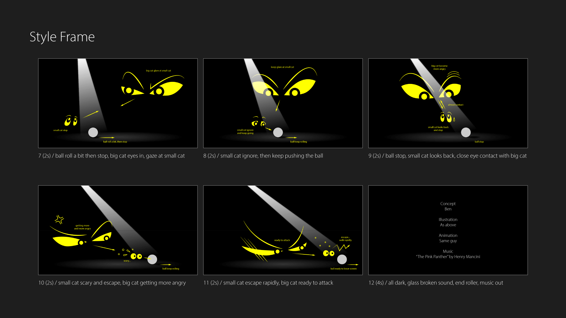 This 12-scene animated short, titled Sly, centers on a rhythmic encounter between a bouncing ball and two feline personas . set to henry mancini’s "the pink panther," the project explores the tension between a playful "small cat" and an observant "big cat".